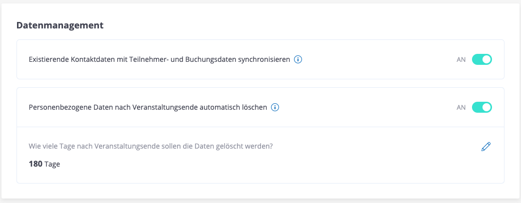Achtung! Derzeit werden die Daten (Kontakte sowie Buchungsdaten/Zusagen) 180 Tage nach dem