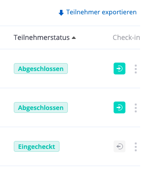 Sie erscheint dann auf der Seite im System unter Teilnehmerstatus "Eingecheckt".