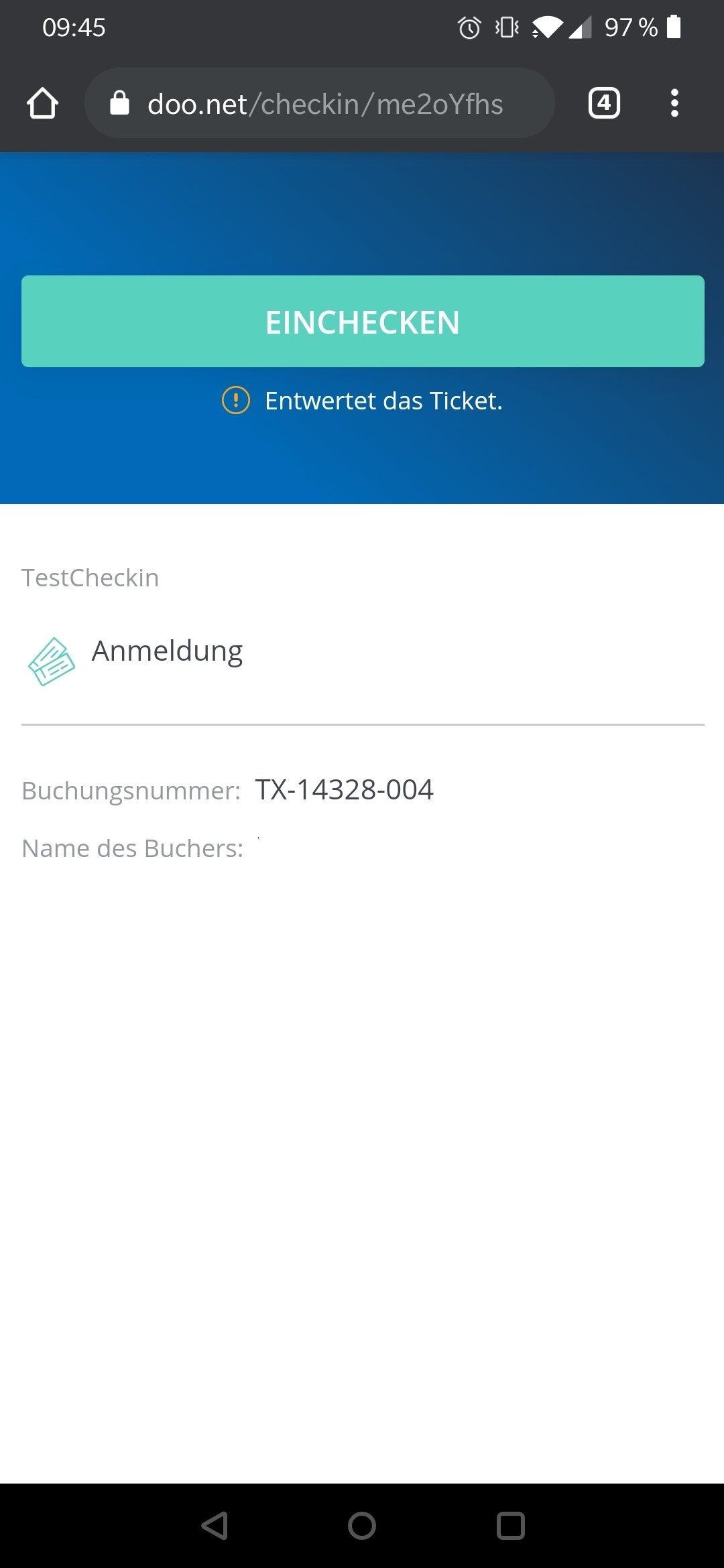 In den Screenshots sehen Sie die Check-In-Seite, die aufgerufen wird, wenn das Ticket mit einem QR-Code gescannt