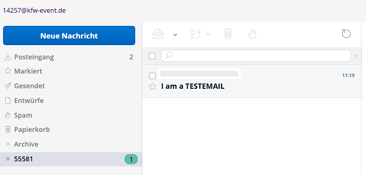 Nachdem eine veranstaltungsspezifische E-Mail versendet worden ist, wird ein neuer Unterordner mit der Event ID erstellt. In ihm befinden sich alle veranstaltungsspezifischen Rückläufer-E-Mails.