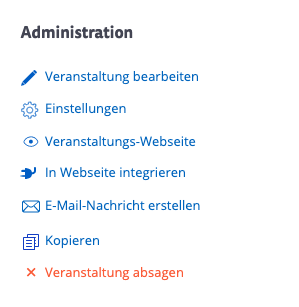 - Veranstaltung bearbeiten - Hier kann die Veranstaltungsbearbeitung erneut aufgerufen werden um etwa Ticketkategorien oder optionale Fragen anzupassen.