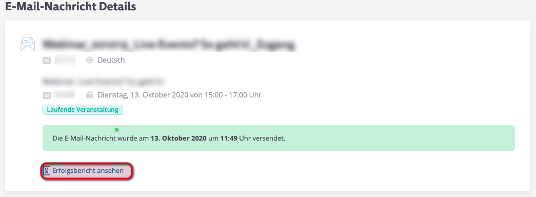 Klicken Sie auf die entsprechende E-Mail Nachricht (Kampagne) und anschließend auf "Erfolgsbericht ansehen" um detailliertere Informationen zu erhalten.