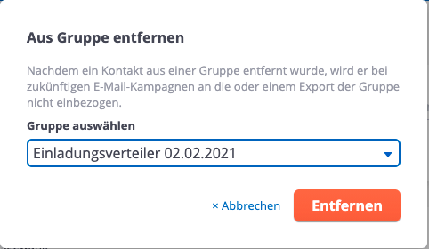 Die registrierten Kontakte sind aus der Empfängergruppe entfernt.