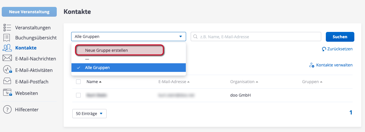 Die Einladungsliste empfiehlt sich insbesondere wenn sich Ihr Event sich an einen bereits bekannten Personenkreis richtet, deren Kontaktdaten im doo Kontaktcenter vorliegen.
